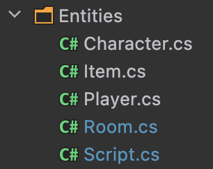 As with all of my projects, files are organised based on what they are. So Commands, Constants, Entities, Exceptions, FileDefinitions and the ever helpful “Game” folder.